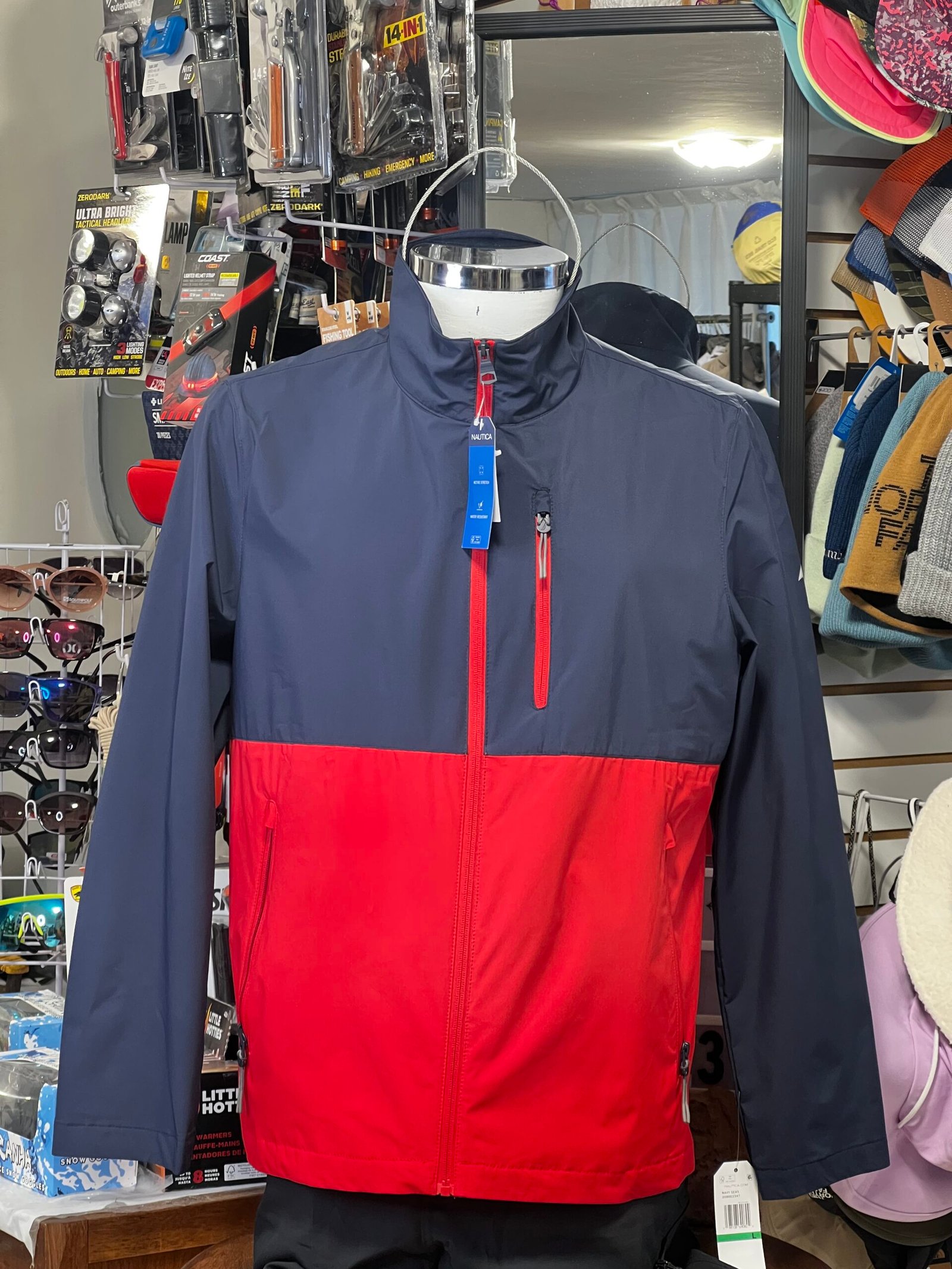 Cuenta con cierre frontal completo, bolsa en el pecho con cierre y un ajuste cómodo que facilita la movilidad. Su diseño bicolor de estilo náutico aporta un look moderno y versátil, ideal tanto para uso urbano como para actividades al aire libre.