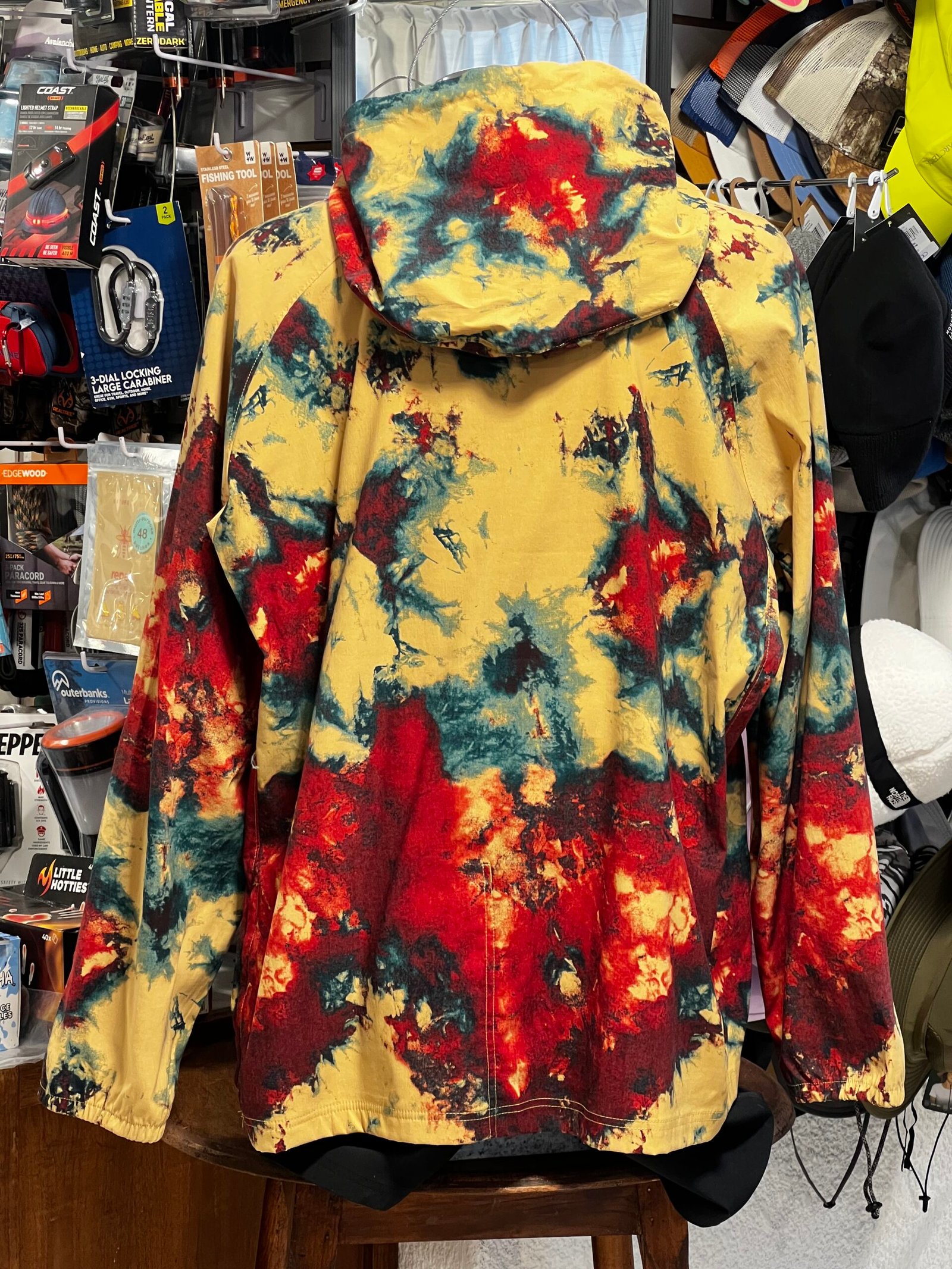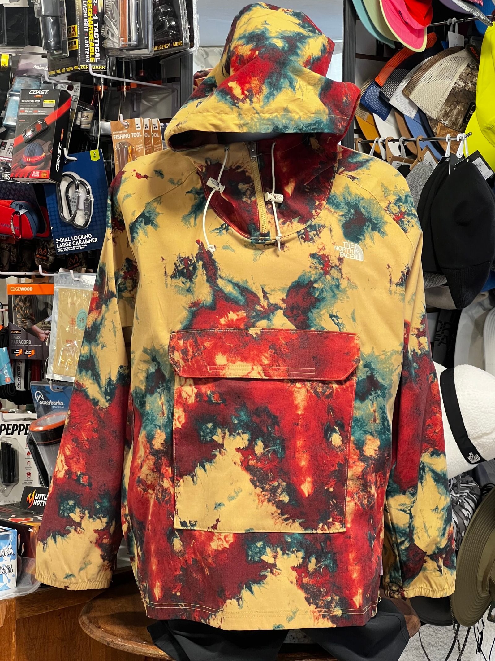 Presenta un diseño estampado moderno, capucha ajustable, y bolsa frontal tipo canguro con solapa que añade funcionalidad y un look outdoor auténtico. Su construcción ligera permite usarla como capa exterior para viento ligero, caminatas, viajes o uso urbano casual.