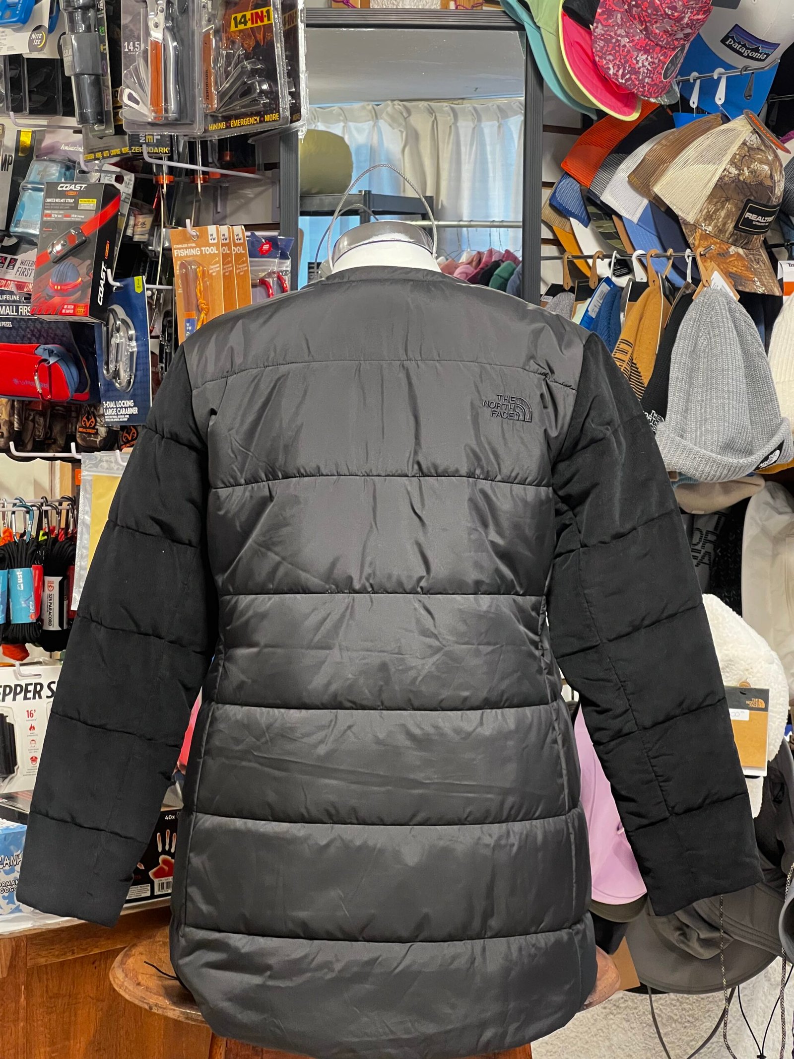 La The North Face Quilt Puffer Waist Length Snap Front Coat es una chamarra acolchada diseñada para brindar calidez práctica y confort en climas fríos. Su diseño tipo quilt distribuye el aislamiento de manera uniforme, ayudando a retener el calor corporal sin generar volumen excesivo.